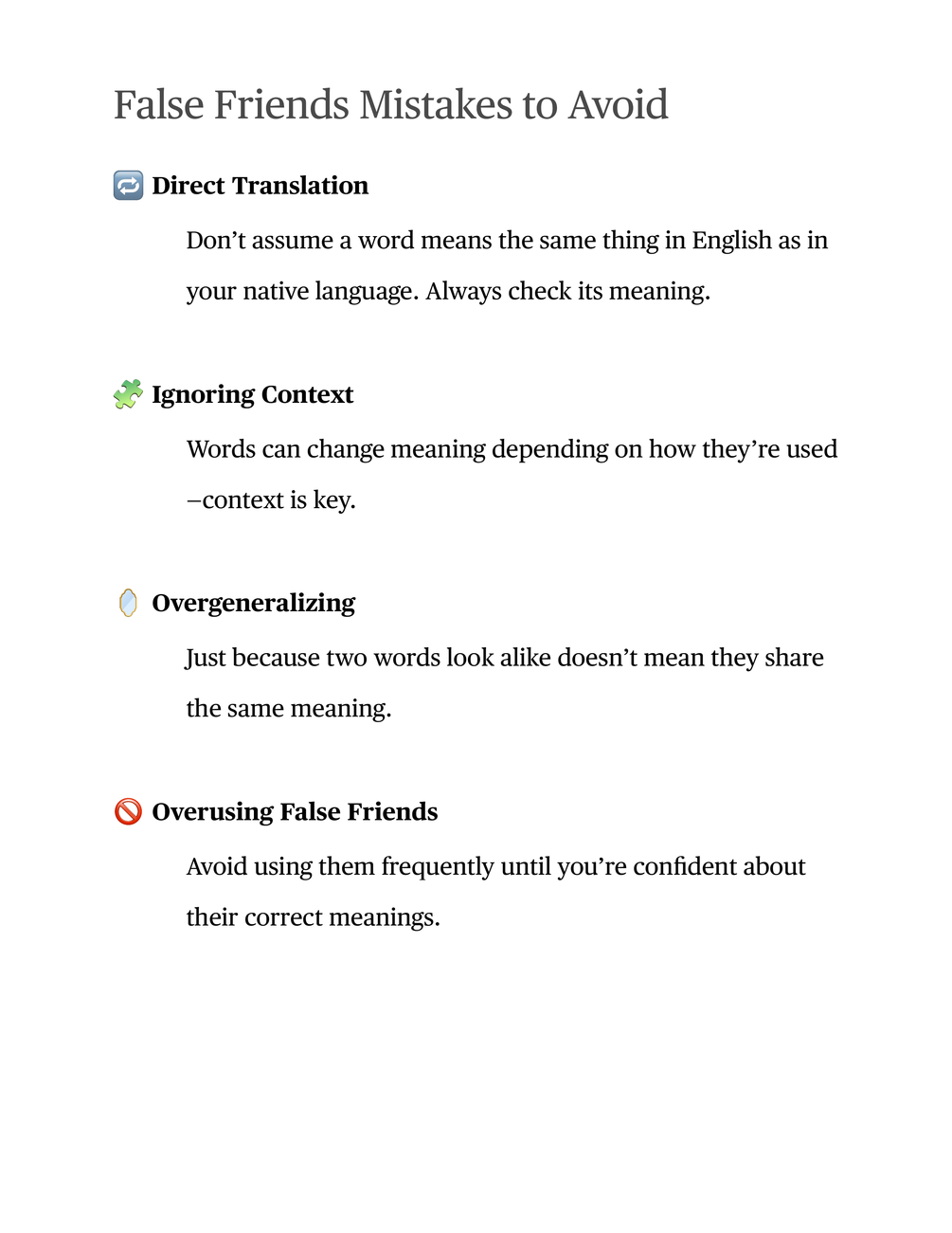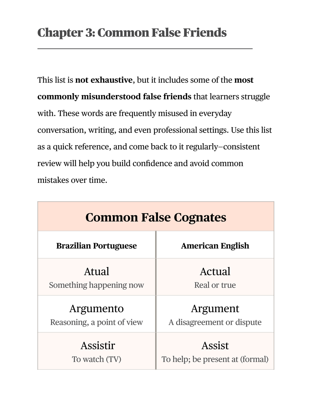 🚫 Don't let similar-looking words trick you. This guide helps Brazilian Portuguese speakers avoid “false friends”—English words that look or sound familiar but mean something completely different.