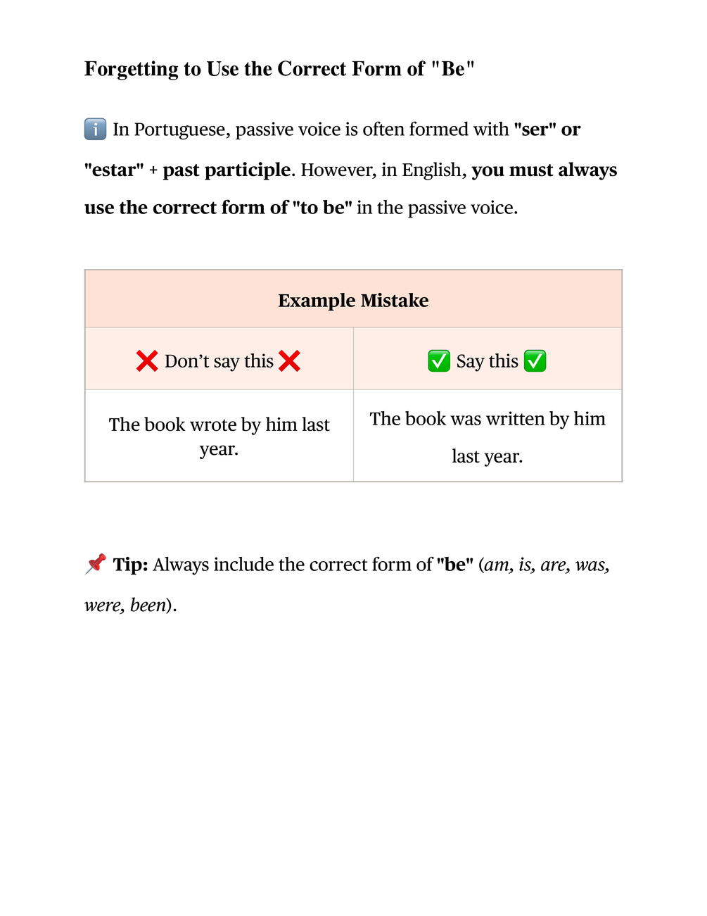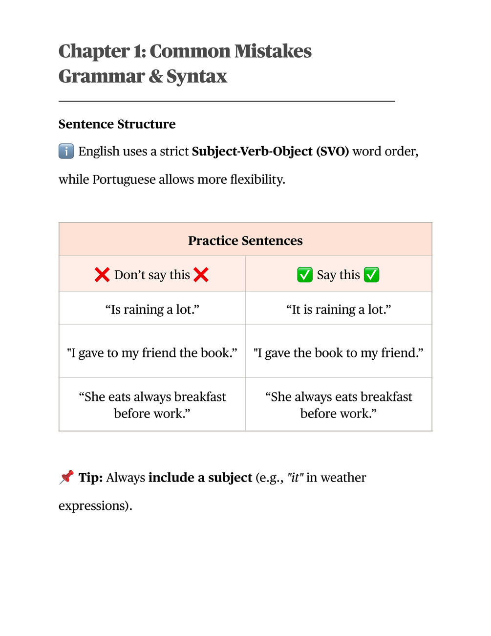 Level up your sentence structure and grammar accuracy. This guide helps Brazilian Portuguese speakers overcome common English grammar errors, confidently use active and passive voice, and speak and write with greater clarity.