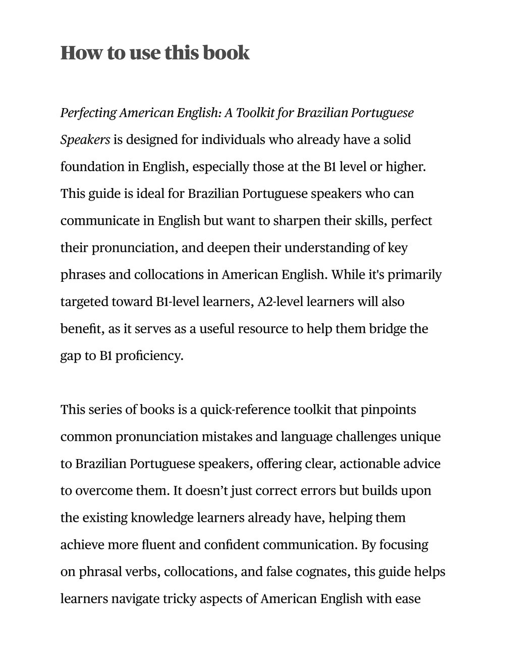 Master the sounds and structure of American English! This book helps Brazilian Portuguese speakers improve vowel and consonant pronunciation, understand key word-building patterns, and speak more clearly and naturally.